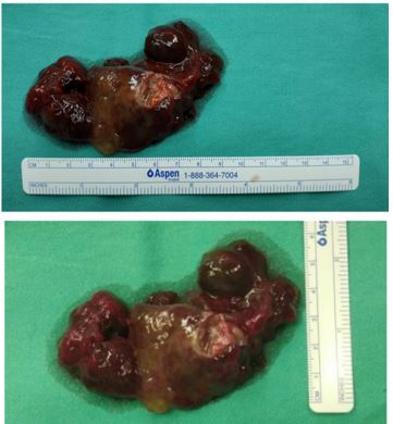 The myxoma resected measured 9 cm x 6 cm x 1 cm which is approximately twice the size of the average cardiac myxoma. In Lee and et al.’s study, the mean myxoma length was 4.73 cm with 11 cm being the longest [4]. In the same study, only 2 were over 10 cm in length [4]. The myxoma we extracted was nearly twice the average size.