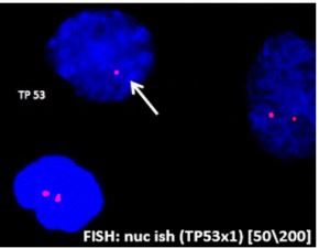 TP53 aberrations is one of the major causes of resistance to chemo-immunotherapy in patients with high-risk group CLL. Deletion of chromosome 17p13 and TP53 mutation is associated with a short time to progression and remain the most important risk factors for progression-free survival (PFS) and overall survival (OS) for patients with CLL [4,6,8,9]. The frequency of deletions/mutations of the TP53 genein patients with high-risk CLLis up to 40-50%. Approximately 80% of patients harboring del (17p) also carry a mutation of the TP53 gene and 20% of patients without del(17p) can still carry TP53 mutations [4]. Median OS of CLL patients harboring TP53 mutations compared with those without 23.3 versus 62.2 months respectively [2]. Patients with a TP53 gene aberration are usually resistant to CITand no standard treatment exists. Responses to front-line standard CIT are short lived. The treatment of patients with CLL with del(17p)/TP53 mutation is a major challenge [2]. The advent of non-cytotoxic agents, such as the inhibitors BTK and anti-BCL2 proteins is changing the treatment landscape in CLL, including its high-risk forms [10-12].