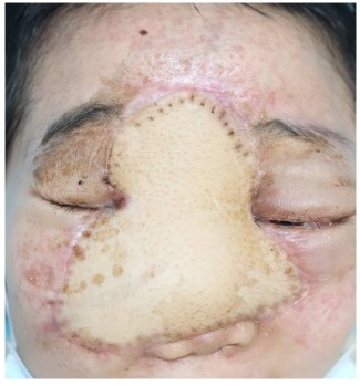 The long-term follow-up showed that the skin flap survived well, and the visual acuity improved to LP in one side and HM in other side.