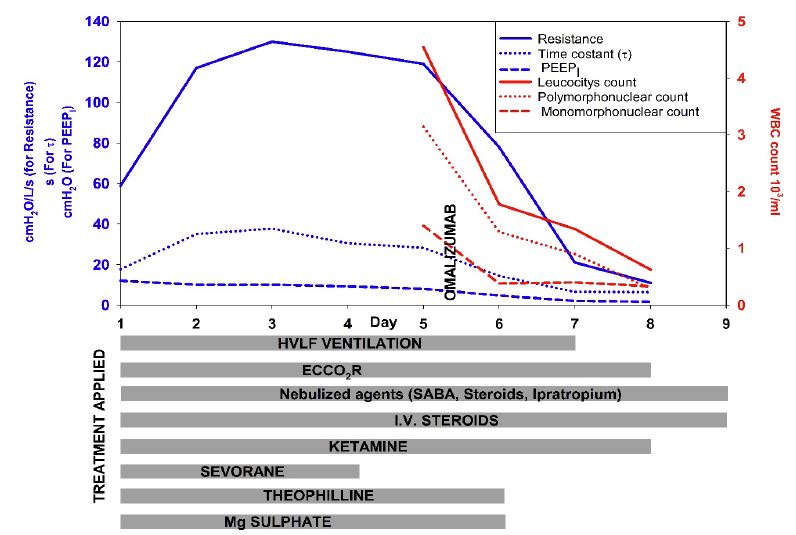 Conclusion: Off-label use of Omalizumab provided a fast WBC reduction in BAL and fast recovery in a paediatric severe status asthmaticus refractory to all treatment.