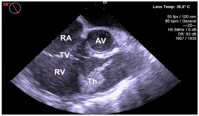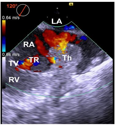 To our knowledge, this is the first case of thrombogenic cardiac abnormalities caused by bar displacement, eventually giving rise to a floating RHT formation. Thus, the surgical team must make every effort to reduce the occurrence of bar displacement, including the use of bar stabilizers, suturing, or wiring the pectus bar and stabilizers, as well as adding additional novel fixation devices. Moreover, because the mortality rate in patients with RHT is approximately 28%, early diagnosis and aggressive treatment are of great importance [7]. In this case, we use cardiovascular ultrasound to diagnose the RHT and to guide the surgical plan intraoperatively. It is crucial for clinicians to familiar with echocardiographic skills for intracardiac thrombus identification and measurement.