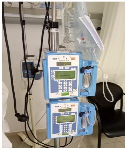 Following the positive prick result, allergy to trastuzumab was confirmed (Figure 1). For this reason, the oncology department requested a trastuzumab desensitisation regimen. This step, the patient is allowed to receive the anti-HER-2 drug as a targeted therapy against the pathology. The allergy service, in agreement with the pharmacotechnical area of the hospital pharmacy, drew up a protocol for desensitisation to trastuzumab, which divides the administration process into 11 steps (Table 1). The process consists of administering the drug in 11 exponential dilutions until the patient’s full dose is completed (384 milligrams). The admixture was prepared as instructed by manufacturer in 0.9% sodium chloride. After aseptic reconstitution with sterile water for preparation for injection, the physical and chemical stability of the reconstituted solution has been demonstrated for 48 hours at 2OC-8OC. Aseptic dilution in bags containing 9 mg/ml (0.9%) sodium chloride solution for injection has demonstrated physical and chemical stability of trastuzumab for up to 30 days at 2OC-8OC and 24 hours at temperatures not exceeding 30OC. In this case, pharmacy service dindn´t prepare the admixture with overfill to accommodate residual volume in intravenous line. The administration tube was provided by the nursing staff. Finally, after the infusion, the IV was flushed with saline to collect any drug that may have been deposited. In addition, a premedication regimen is administered, corticosteroid (methylprednisolone 60 mg) orally in combination with an antihistamine (cetirizine 10 mg) orally. The function of these drugs is to suppress the possible pro-inflammatory activation of the pro-inflammatory activation of immune system cells and to reduce the possible effects of histamine released by mast cells following exposure to the drug. The stipulated protocol consists of infusion in an ascending manner in terms of speed, up to the maximum rate described in the technical data sheet, and doses every 15 minutes, so that after 2 hours and 42 minutes, the patient receives the full dose (figure 2). In this case, the drug was administered according to the described schedule without incident, so the patient was able to resume trastuzumab administration and completed the remaining cycles of the oncological scheme (+13 cycles). Since then, in all the administrations, the speed and dose agreed in this protocol was respected (Table 1).