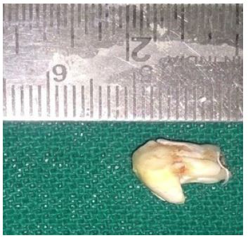 Odontomas are either well organized/ malformed/ tooth like structures or denticles of varying size and shape, surrounded by a narrow radiolucent zone. Treatment is done by surgical removal of odontome and if needed, the associated tooth is also extracted [1,7].