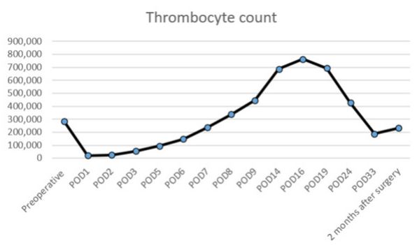 In the current case, the patient underwent bariatric surgery under enoxaparin prophylaxis and presented with bleeding complications, including oral petechiae and intraabdominal bleeding with an abrupt decline in platelet count. Even though his PF4 antibody was negative on postoperative day 1, it turned positive on day 9, which was consistent with a diagnosis of heparin-induced thrombocytopenia. Our case points out that the risk of heparin-induced thrombocytopenia also exists in bariatric surgery and with enoxaparin prophylaxis which was thought to have a lower risk of thrombocytopenia [9]. In addition, our case represents a rare presentation of HIT which is bleeding (Hemorrhagic drainage and oral petechiae) because HIT usually presents with thrombotic complications rather than bleeding complications [7].