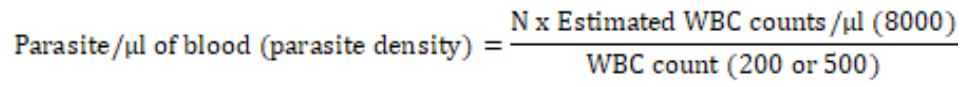 Where N = number of asexual parasitic forms present in as many microscopic fields as possible to count 200 leucocytes.