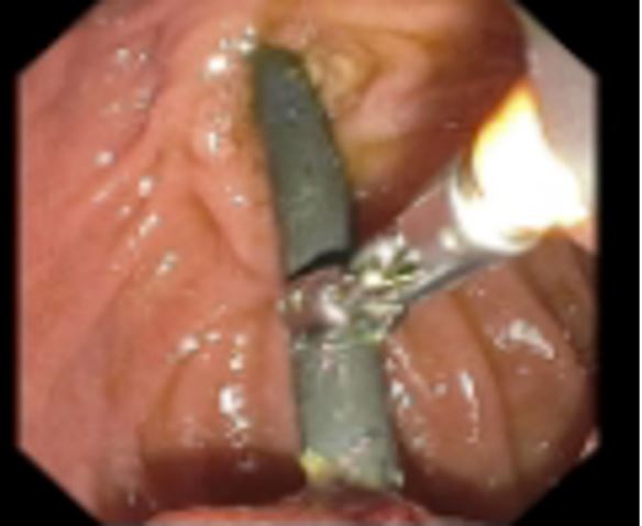 ERCP with Endoscopic Sphincterotomy (EST) and stone extraction is one of the more common interventions to treat choledocholithiasis with a success rate of 80-95% [1-3]. Biliary stents are used to provide patency of obstructed bile ducts for any causes such as malignancy, benign biliary strictures, or bile duct stones. The more common complications that occur include infection, pancreatitis, and bleeding. Late complications include stent dysfunction and less frequently cholecystitis, duodenal perforation, and bleeding. Intestinal perforation occurs in less than 1% [4]. The longer a stent is in place the higher the risk of occlusion, stent migration or cholangitis. It is recommended that stents be removed within three months. If long term treatment with biliary stents is required, it is recommended that replacement occurs every 3-6 mo.