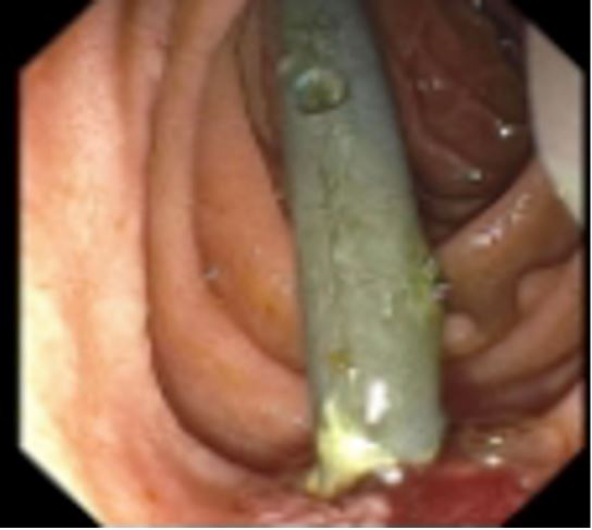 Biliary stents, typically made of plastic or metal, are used to relieve obstruction in the biliary tree or to repair biliary leaks. Biliary stents are commonly placed via Endoscopic Retrograde Cholangiopancreatography (ERCP) after obstruction is relieved, to prevent pancreatitis, however they are not without complications and have a success rate up to 90% [1-3]. Complications include stent occlusion, stent migration, cholecystitis, pancreatitis, bleeding, perforation, and cholangitis [1]. There is debate on the timing of stent removal or replacement.