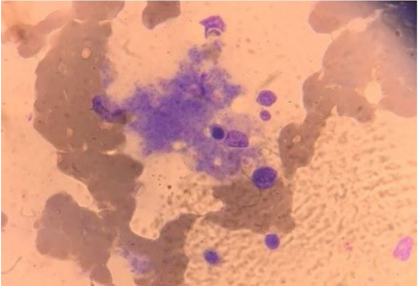 U/L, LDH 409 U/l, triglycerides 120 mg/dL Ferritin 1,410.42 ng/mL BM: histiocytes increased in number (4%) with marrow aspirate showing hemophagocytosis |