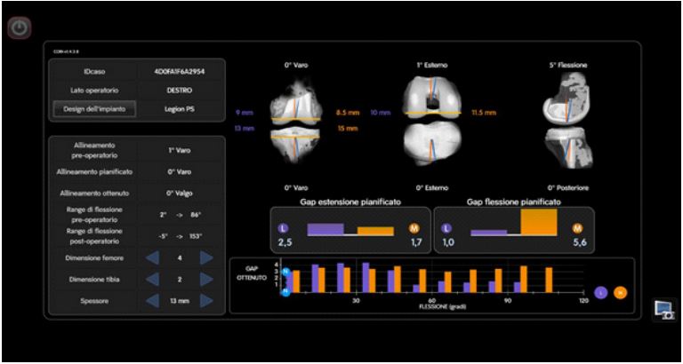 Using the operative plan, the CORI robotic arm with a saw attachment made minimal fresh cuts to the femur and tibia. Trial components were implanted, resulting in a well-balanced knee with a 13 mm trial polyethylene insert. Osteophytes around the patella were removed and the joint was irrigated. Femoral and tibial components were cemented and implanted (femur size 4 PS, femoral stem 12 mm X 120 mm, tibial size 2, tibial stem 10 mm X 120 mm), with a 13 mm polyethylene PS insert. Intra-operative tests showed smooth and centered patellar tracking, with knee ROM ranging from -5 to 110 degrees. The operative time was 172 min, a significant increase as compared with our standard (96±23 minutes).