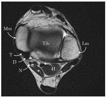 The tarsal tunnel runs behind the medial malleolus inferiorly. The posterior tibial nerve passes through this tunnel between the FDL and flexor hallicus longus muscles [5]. Compression of this nerve leads to tarsal tunnel syndrome, and this is characterised by pain, tingling or numbness in the foot [6]. MRI is a modality of imaging that can depict the bones, soft tissues and boundaries of the tarsal tunnel.