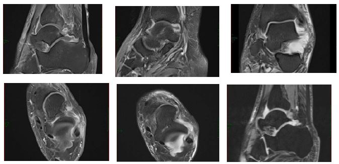 Before the fever began, he complained of anaemia, which developed prior to the onset of the fever. Despite being prescribed oral antibiotics, he experienced no improvement. He later developed progressive right anterior thigh pain and limping, treated with Relaxon and Panadol, but without relief. He now reports right ankle pain with similar symptoms, diagnosed as septic arthritis by MRI (Figure 1) and underwent drainage with persistent fever.