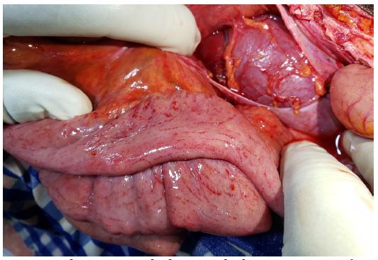 A 17 years old who presented at the hospital as a case of referral from a traditional birth attendant place, on account of colicky abdominal pain which was initially at the umbilicus before becoming localized to the right iliac fossa, on and off over a year but later became generalized with associated high grade fever and anorexia. There was associated urinary frequency, urgency and dysuria. There was no history of vomiting, abdominal distention or diarrhea as well as obstructive urinary symptoms.