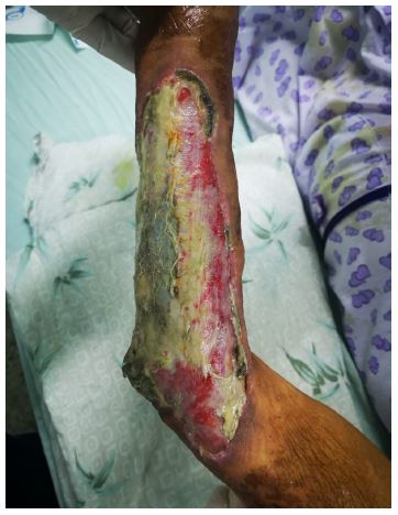 The surgical debridement and the subsequent surgical coverage using local flaps or skin grafts have been demostrated to be the definitive treatment [34], that is why the early reference of affected patients to the Plastic Department for surgery, is advisible [35].