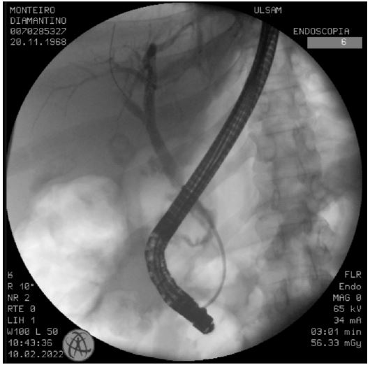 Due to the persistence of bile duct stenosis and recurrent episodes of cholangitis, definitive surgical treatment with a Roux-en-Y hepaticojejunostomy was performed. There were no significant complications in the postoperative period, and the patient is now under clinical follow-up.