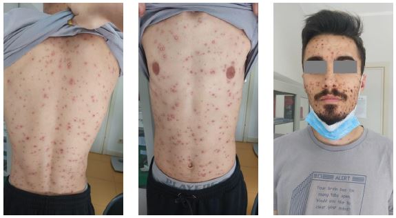 On June 18, 2025, the patient returned to the walk-in clinic due to significant worsening of the rash, with the appearance of multiple new lesions across the body. He had been afebrile for 2 days and was adhering to treatment with acyclovir 800 mg, paracetamol 1 g, and metamizole 575 mg.